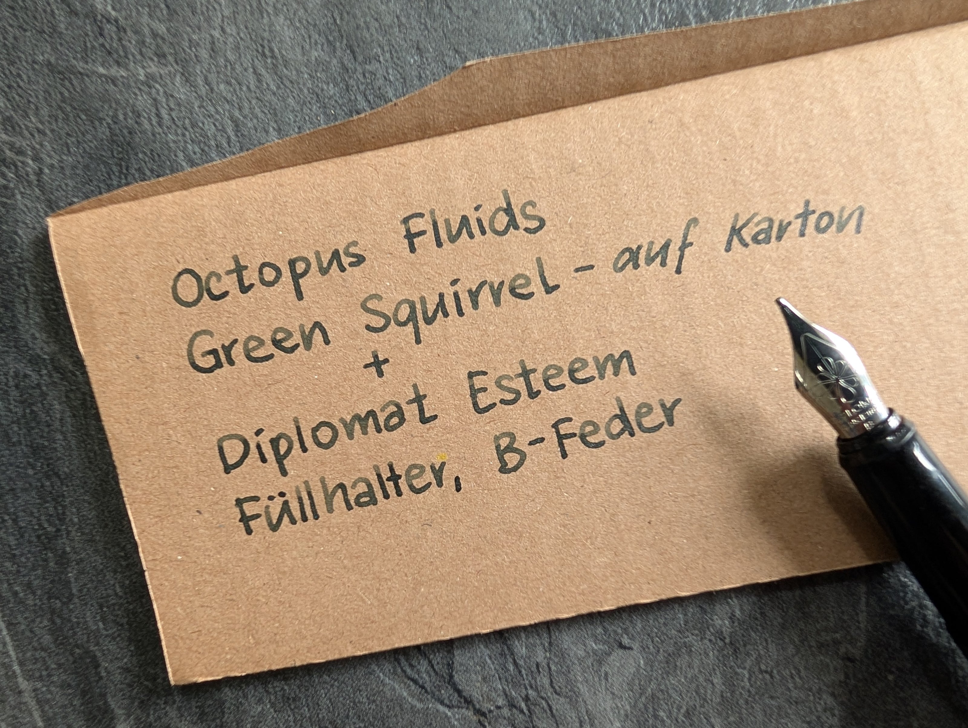Mit wasserfester Füllhaltertinte lassen sich Ihre Briefe und Pakete stilvoll beschriften. Ideal eignen sich dafür die Octopus Fluids Write & Draw Tinten, in einem Füller mit breiter Feder.