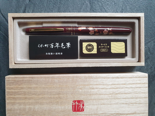 Kuretake Pinselstift in Holzkästchen, weinrot, Kirschblütenmotiv [DU181-215]
