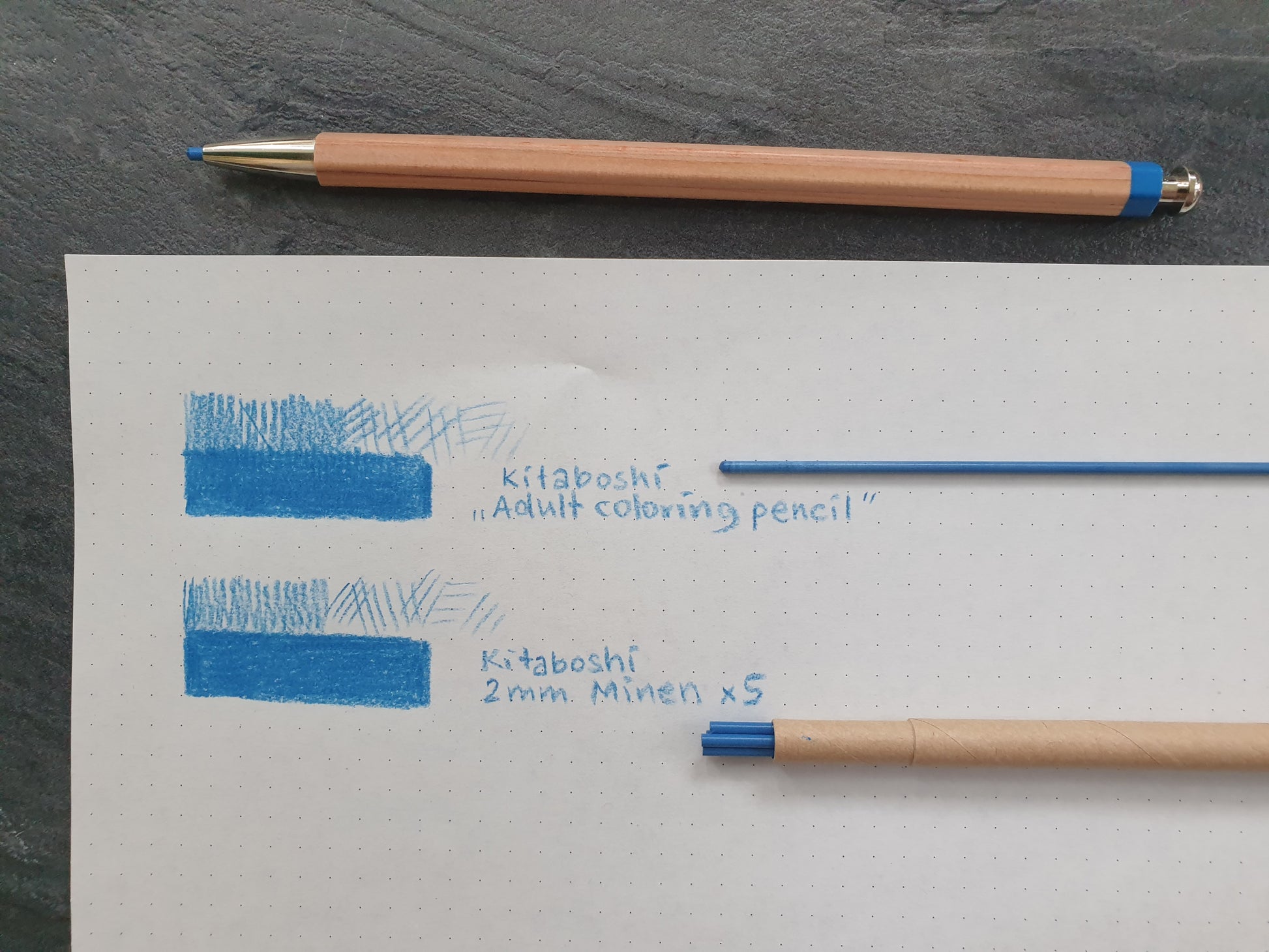 Diese Minen sind wasserfest, und weicher als die meisten 2.0mm Farbminen wie z.B. die von uni mitsubishi und Pentel. Aber immer noch härter als die Minen in Künstlerfarbstiften wie Polychromos.