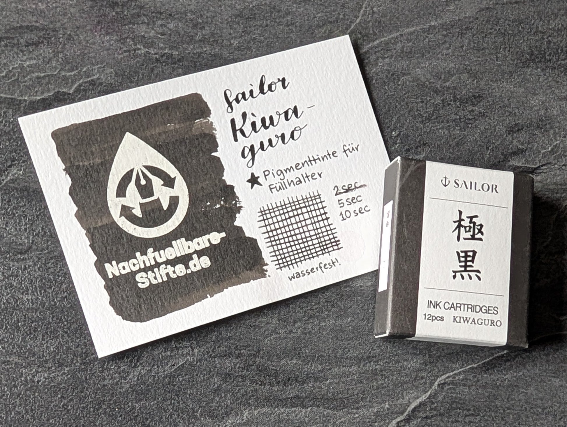 + Wasserfeste Pigmenttinte. Es ist keine dokumentenechte Tinte. Zumindest finde ich keine Info, dass es die DIN Norm erfüllt anders als die Octopus Fluids Dokumenttinten oder Write & Draw Tinten.