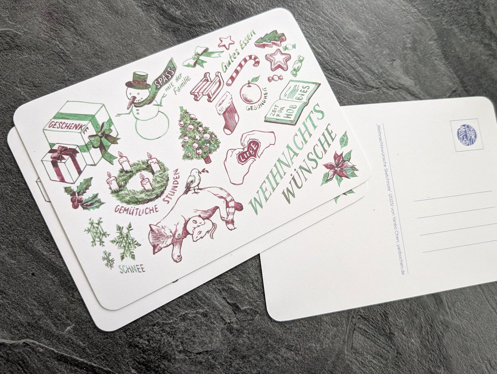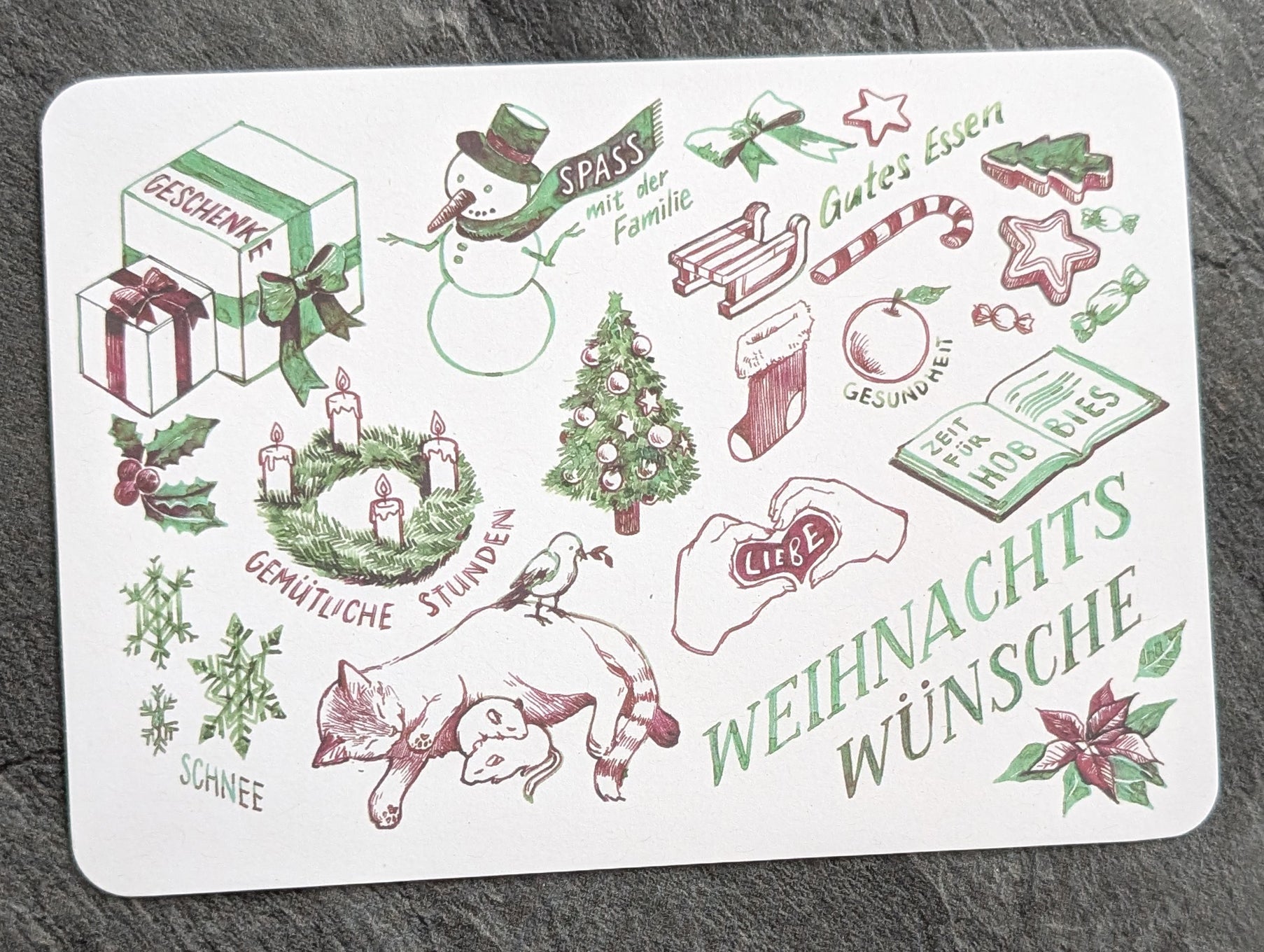 "Weihnachtswünsche" Postkarte 2025, Recyclingpapier DIN A6, abgerundete Ecken